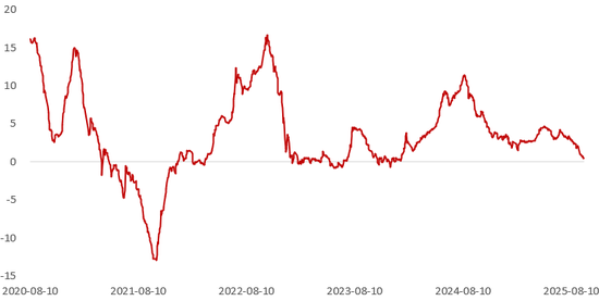 2025年以来,农业农村部统计的能繁母猪存栏基本保持稳定为主,月度环比仅有小幅下滑,截至7月母猪存栏量为4042万头,环比下跌1万头,仍高于国家3950万头的产能调整目标,后续仍有去化空间。卓创统计数据母猪存栏7月开始已经连续下滑两个月,累积下降2%-3%,主要以大型企业下降为主,政策对部分头部企业的产能起到了引导作用,但整体下降幅度及速度均偏小,养殖端有“你”降“我”增的行为,主要原因为行业2024年以来已经连续盈利大约一年半的时间,养殖端主动去产能意愿较低,9月现货跌至成本附近后,后续价格若继续下跌,叠加政策端指引,产能去化有望加速,关注四季度现货表现。