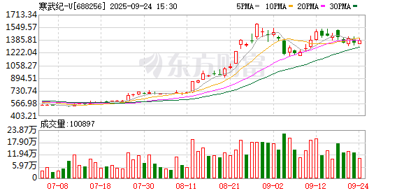 证券时报·数据宝统计显示,寒武纪-U今日收盘价为1374.00元,上涨1.75%,日换手率为2.41%,成交额为137.21亿元,全天主力资金净流入1.12亿元,近5日该股累计下跌4.72%,近5日资金合计净流入5.58亿元。