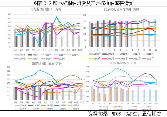 9月供应增速放缓、出口需求回升,马棕供需形势整体好转。9月马来降雨偏多,尤其沙巴、沙捞越地区有洪灾发生,一定程度上影响该地区油棕果采摘和运输,SOMA及MPOA等给出的数据显示9月前20日马棕产量分别降8%和4.26%,且10月大概率延续多雨状态,2025年或重演2024年的马棕提前进入减产周期。出口好转,9月前20日马棕出口增加8-9%,其中印度进口较上月同期增超8%,且在本轮棕榈油下跌时中印逢低补库;加之今年马来国内消费维持高位,尤其是3季度月均高达45万吨以上。供减需增,9月马棕库存或在6-8月连续3个月增速放缓后阶段性止增。