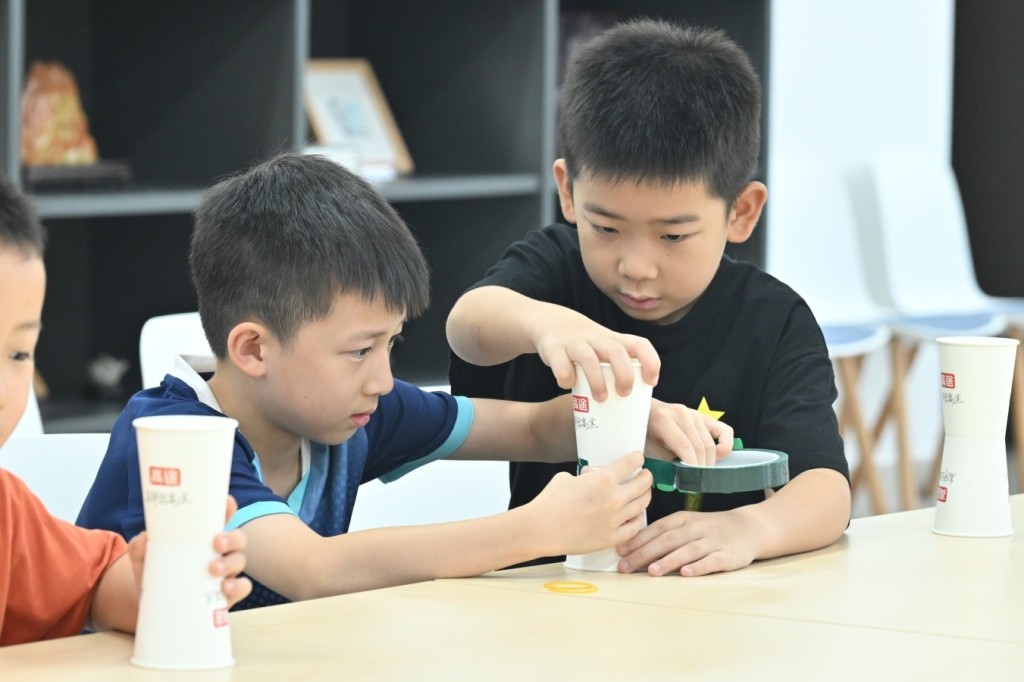 9月21日上午,在专业老师指导下,孩子们亲手 *** 马格努斯双杯*,通过弹性势能的瞬间释放,观察飞行器在空中划出的独特轨迹。孩子们在一次次调试发射角度与橡皮筋张力的过程中,体验空气动力学与能量转换的奥秘,成为驾驭气流的“小滑翔家”。
