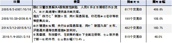 过往几次牛市持续时间