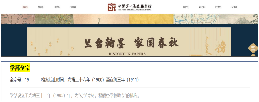 此处主要是指中国之一历史档案馆所藏“学部全宗”档案(全宗号:19)。此项档案起止时间为1900-1911年,总凡77卷6546件(中国之一历史档案馆编:《中国之一历史档案馆藏档案全宗概述》,国家图书馆出版社,2023年,109-111页)。从2009年到2025年,笔者因为清代文科、武科、翻译科考试等选题研究,曾经多次前往查阅,收获甚多。一史馆也从原来的故宫西华门内,搬迁至祈年大街现址,馆舍更加宏敞,摘抄更为便捷。不过,学部全宗档案因为整理扫描等原因,在此期间一直未曾开放。