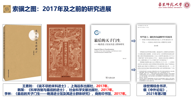 学术研究讲求积渐而进。晚清科举革废,向为科举研究领域热点之一,加之最近两年连值“癸卯学制”颁行以及诏停科举120周年,又有新的高峰热点。若要对此完整梳理,当俟专文。此处仅就所见2017年以来之研究进展(部分适当回溯),择其与进士馆及末科进士关系较为密切者,分述如下。
