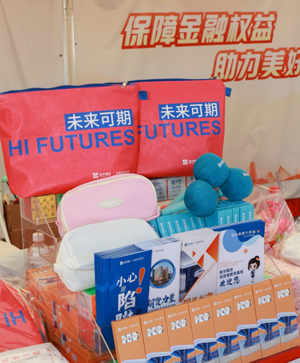 本次“开学之一课”以“高校+媒体+政企”创新组合形式,通过脱口秀、快板等方式让反诈知识入脑入心,帮助大学生提升金融风险防范能力,走好迈入社会之一步。活动现场南华期货展位,吸引了大批师生驻足参与。展台上琳琅满目的投教文创产品也让大学生们挑花了眼:印着“保障金融权益,助力美好生活”宣传口号的笔袋、“未来可期”美好寓意的斜挎包,丰富的金融工具书……既实用又有意义。