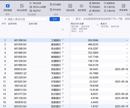 常熟银行以方案实施前的总股本33.17亿股为基数,每股派发现金红利0.15元(含税),共计派发现金红利4.97亿元,已于9月8日发放;民生银行每股派发现金红利0.136元(含税),共计派发现金红利59.54亿元,已于9月16日发放;苏农银行每股派发现金红利0.09元(含税),共计派发现金红利1.82亿元,已于9月19日发放。
