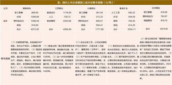 资料来源:铜陵有色等公司公告,天风证券研究所 备注1:2024年数据,铜陵有色及江西铜业公布的为铜产品(含铜材)成本,云南铜业、紫金矿业和北方铜业公布的为冶炼铜成本