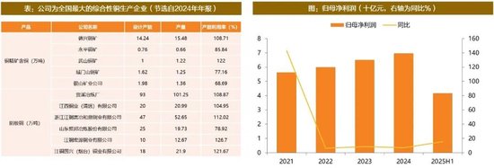 公司在铜以及相关有色金属领域建立了集勘探、采矿、选矿、冶炼、加工于一体的完整产业链,是中国重要的铜、金、银和硫化工生产基地。公司主要资产: 持有上市公司总股本的44.48%(截至25H1),5家在产冶炼厂,其中贵溪冶炼厂为国内更大单体铜冶炼厂,5座100%所有权的在产矿山等。至2024年,公司联合其他公司所控制的资源按本公司所占权益计算的金属资源量约为铜1,312万吨、黄金97.26吨,阴极铜冶炼产能213万吨,存在明显的规模、技术与产业链一体化优势。