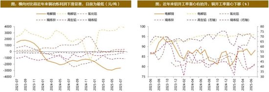 (1)电解铜冶炼利润下滑最为显著,亏损程度较大。铜冶炼利润从2022年超过2800元的单吨利润下滑至2025年近3000元/吨的深度亏损,盈利水平明显低于其他有色金属;