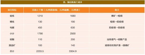 火法约占冶炼产能的80%以上,现阶段其依然是主流工艺,据《铜冶炼成本计算需关注的问题》(赵君榕)一文中测算,火法炼铜单吨冶炼成本平均大约在2234~3305元/吨范围(不含设备折旧)。