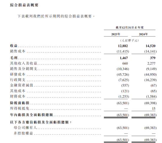 而造血能力的缺失让局面雪上加霜:2023-2024年,公司营收仅从1288.2万元增至1452万元,这点营收体量对于债务和应付款项可以说是杯水车薪,所以这两年净利润分别亏损6350.1万元和6938.3万元,相当于 2024年每实现1元收入就要承担4.78元亏损。