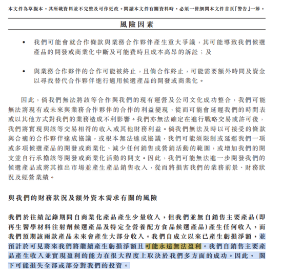 毛利率的断崖式下滑更暴露了业务结构缺陷,从2023年的11.4%骤降至2024年的2.6%,核心原因是收入结构的 “劣币驱逐良币”—— 医药中间体、面膜等非核心业务占比高达52%,且毛利率为-8.8%;而真正具备技术价值的再生医学器械与特医食品仅贡献48%收入,核心产品仍未商业化。曾经支撑毛利的医疗研发及咨询服务,2024 年收益占比从22.6%腰斩至 10.9%,即便其毛利率高达96.1%,也难挽整体颓势。