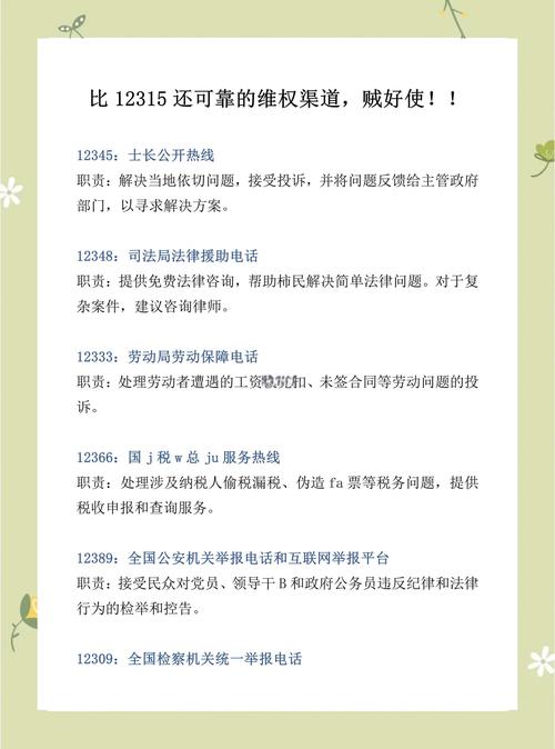 - 文旅部门专项监管:若涉及旅行社违约、景区违规,可直接拨打当地文旅局投诉 *** (可通过 12345 查询),文旅部门对旅 *** 业有专项监管权。