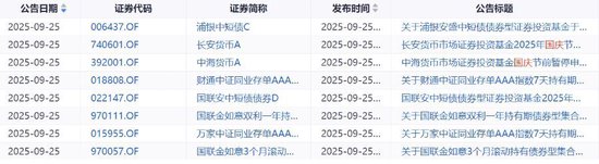 比如,浦银安盛基金9月25日发布关于浦银安盛中短债债券型证券投资基金于2025年国庆节假期前暂停通过部分销售机构的申购、转换转入及定期定额投资业务的公告。内容显示,“浦银中短债A”和“浦银中短债C”自9月29日暂停通过部分销售机构的申购、转换转入及定期定额投资业务,原因说明为保护基金份额持有人的利益,加强基金投资运作的稳定性。