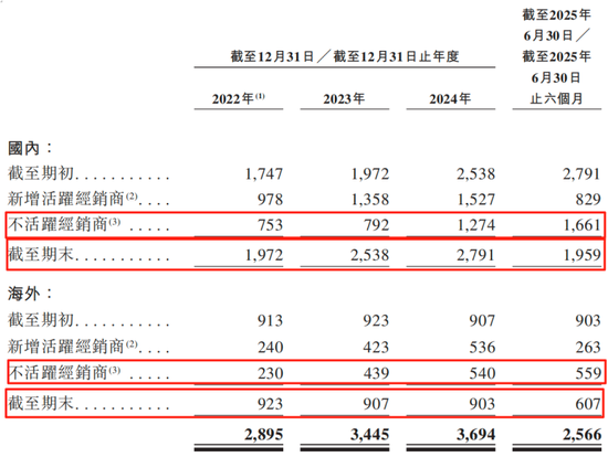 更值得注意的是经销商体系的“健康度”。从数量上看,国内经销商还算稳定,报告期各期末,数量分别是1972个、2538个、2791个和1959个;但海外经销商一直在缩水,从2022年期末的923个,一路降到2025年上半年期末的607个,海外渠道一直在收缩。更棘手的是“不活跃经销商”的数量——报告期内从983个涨到2220个,短短几年翻了一倍多。经销商不活跃,意味着渠道的实际覆盖能力和效率在下降,这对高度依赖经销商的麦科田来说,无疑是个需要紧急解决的问题。
