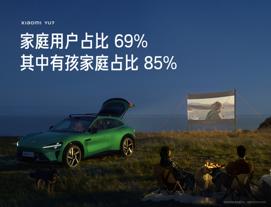 第二是空间,分享一组*:小米YU7 家庭用户占比 69%,有小朋友的家庭占比 85%,小米YU7 能充分满足家庭用户的需求。而且后排座椅很舒服,还有后排屏可以看动画片,所以非常受小朋友的喜欢。
