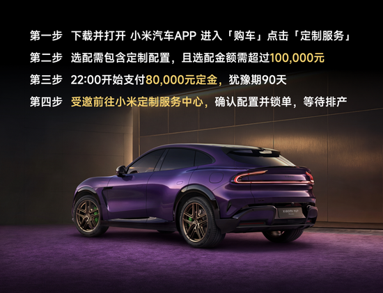 那如何选择小米定制服务呢?首先需要在 APP 上预约,有一个基本要求:包含定制配置和选配金额需要超过 10 万元,并支付 8 万元定金,我们收到订单后,会有专业顾问联系你,在线下帮助你完成定制和锁单过程。