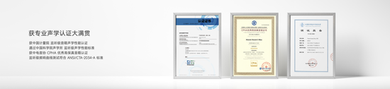 竖向对称式排布,采用了高端音箱常用的 “ MTM 架构”,大幅提升三频衔接性,有效降低失真率,让声音听起来更有临场感。我们还获得了中国计量院、声学所的专业声学认证,监听模式也通过了行业权威的测试标准。