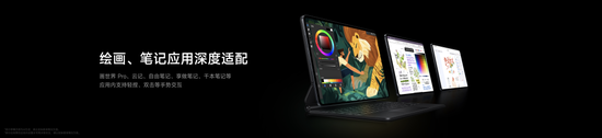 同时,升级支持压感触控。双击可以切换笔刷和橡皮,调整笔刷参数;上下滑动,可以调整笔刷粗细;还能用来刷短视频、当 PPT 翻页器;轻捏,可以唤起调色盘,还能用来自定义 APP 快捷启动。这些丰富的操控手势,不只系统应用,还专门适配了大家常用的绘画、笔记应用。