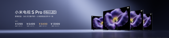 小米电视S Pro Mini LED 2026,全系4个尺寸,首销价格:65 英寸 5199元;75 英寸 6499 元;85 英寸 8499 元;98 英寸 13999 元,首销期还送365天只换不修和小米影视会员年卡,欢迎选购。