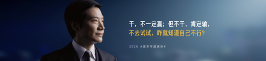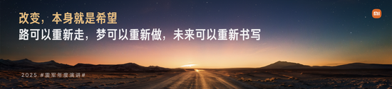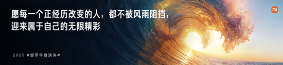 大家晚上好!欢迎大家,今天是我的第 6 次年度演讲。去年3月,我们发布了小米汽车,小米成为首家横跨手机、汽车、家电三大领域的科技公司。今年5月,我们推出了玄戒O1 芯片,小米成为中国大陆首家发布 3nm 制程旗舰芯片的公司。