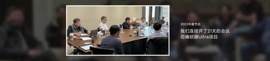 不知大家是否还记得?2022 年春节后,我们开了长达 21 天的会议。当时,SU7 开发到了最关键的阶段,而且,我们刚开始造车,能力和资源严重不足,为了确保 SU7 成功,我们只能忍痛把 Ultra 项目先砍掉。大家都挺沮丧的。