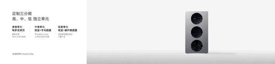 音质上,我们深度定制了三分频喇叭,上下是两个 4 英寸、30W 大功率的低音喇叭,让低音冲击感十足;中间是同轴的中音和高音喇叭,让中、高音从一个点发声,衔接很丝滑。