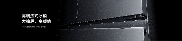 米家冰箱Pro 微冰鲜 法式560L 是小米目前更高端的法式冰箱,配备了高端的法式大抽屉,69cm 的超宽幅大抽屉可以实现整放羊腿,实用性特别强。