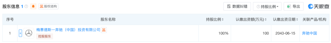 天眼查信息显示,梅赛德斯-奔驰(上海)数字技术有限公司于2023年6月成立,注册资本和实缴资本均为100万人民币,是一家以从事软件和信息技术服务业为主的企业。股权信息显示,该公司由梅赛德斯-奔驰(中国)投资有限公司全资持股,后者由梅赛德斯-奔驰股份公司全资持股。