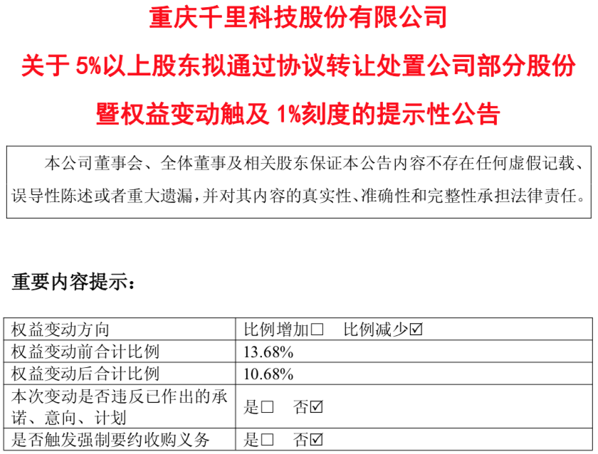 交易完成后,力帆控股持股比例降至10.68%,仍为千里科技第三大股东;奔驰数字技术公司持股比例增至3%,将成为千里科技第五大股东。