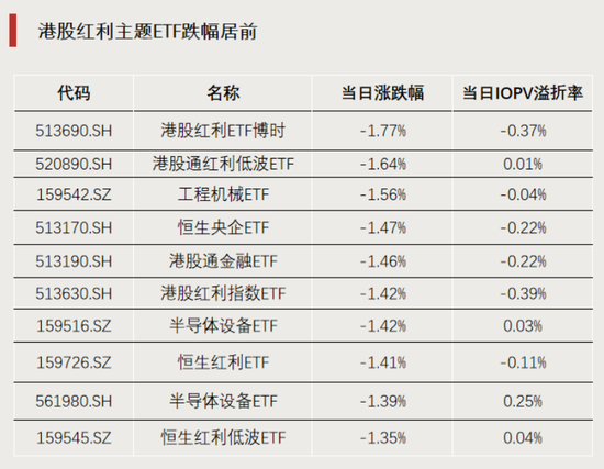多只港股红利主题ETF跌幅居前,港股红利ETF博时(513690)下跌1.77%。