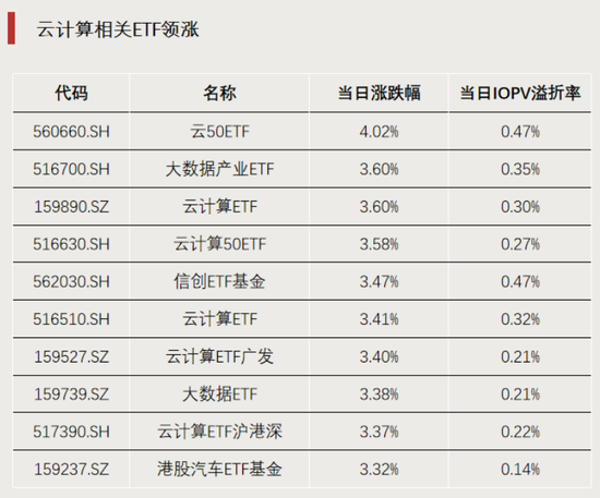 云计算相关ETF涨幅居前