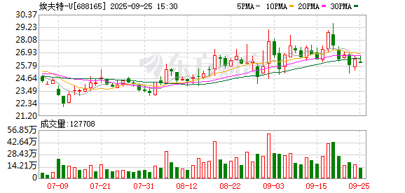 证券时报·数据宝统计显示,埃夫特-U今日收盘价为25.95元,下跌1.52%,日换手率为2.45%,成交额为3.35亿元,全天主力资金净流出1593.17万元,近5日该股累计下跌5.81%,近5日资金合计净流出1.00亿元。