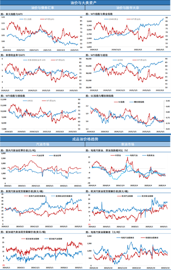 俄罗斯副总理诺瓦克周四表示,俄罗斯将把柴油和汽油出口禁令延长至年底,这凸显出在乌克兰加强了对众多炼油厂的无人机袭击之后,俄罗斯国内成品油供应吃紧。事实上9月乌克兰除了继续加大对俄罗斯炼油厂袭击力度,也开始打击包括港口和管道在内的俄罗斯石油出口设施,这可能迫使俄罗斯出口下降,影响经济收入,内外均陷入困局的被动局面,从经济上施压迫使俄罗斯回到谈判桌,另外近期俄罗斯飞机进入北约国家领空及特朗普对俄罗斯言论的变化让市场警惕战争外溢风险,这也是过去几天油价反弹的重要驱动。