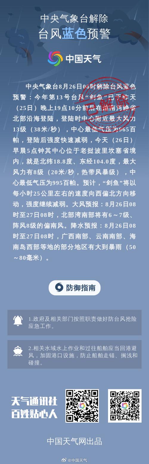 今年第20号台风“博罗依”的中心已于今天(26日)凌晨1点前后在菲律宾萨马岛东部沿海登陆,登陆时中心附近更大风力有12级(33米/秒),中心更低气压为975百帕,今天早晨其强度由台风级减弱为强热带风暴级,早晨5点钟其中心位于萨马岛西部近海海面上,距离海南省三沙市东偏南方向约1360公里,就是北纬12.4度、东经124.1度,中心附近更大风力有11级(30米/秒),中心更低气压980百帕,七级风圈半径为300-320公里,十级风圈半径为100-120公里。