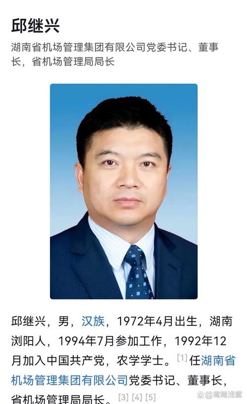邱继兴,1972年4月生,他曾任长沙市委常委、中国(湖南)自由贸易试验区长沙片区党工委书记,湖南省机场管理集团有限公司党委书记、董事长、湖南省机场管理局局长等。