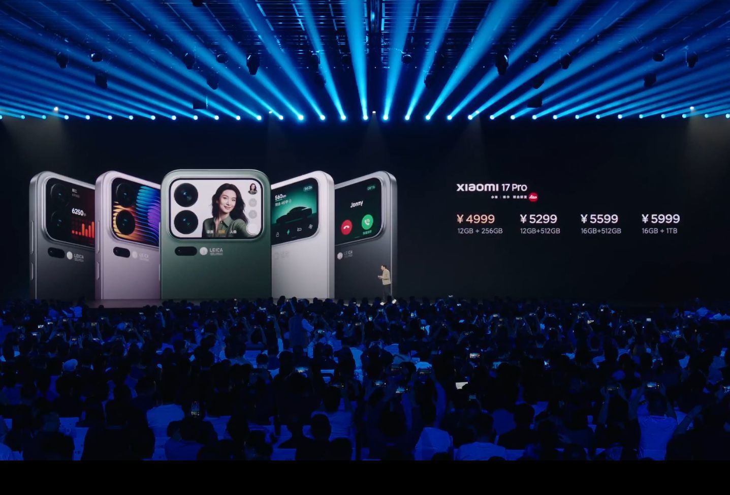 小米17 Pro 12GB+256GB售价4999元,12GB+512GB售价5299元,16GB+512GB售价5599元,16GB+1TB售价5999元。