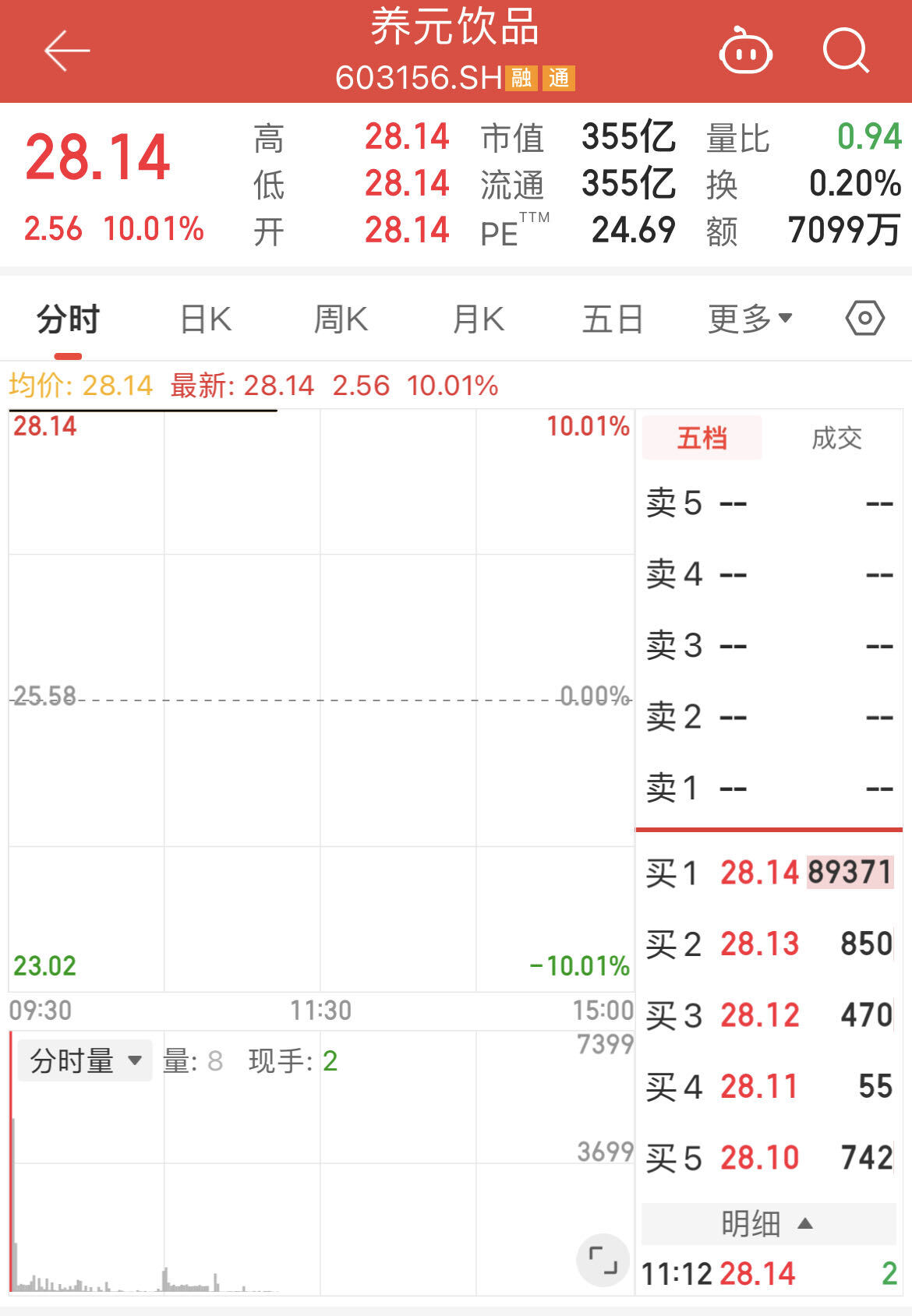 9月26日,“六个核桃”母公司(603156.SH)一字涨停,报28.14元/股,总市值来到354.6亿元,实现三连板。