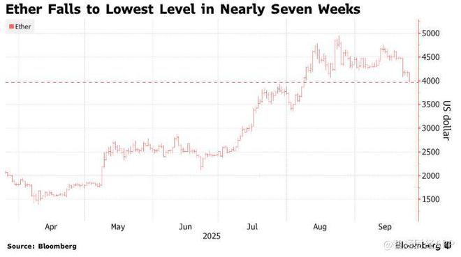 以太坊一度下跌8.2%,跌破4000美元,创近七周以来的更低水平。比特币四周来首次跌破11万美元,跌幅约3.3%。狗狗币和Cronos等更具投机性的代币跌幅更大,分别暴跌9.4%和10%。