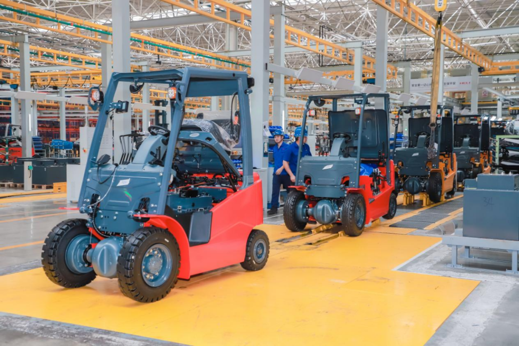 安徽合力电动叉车分公司工厂里的生产场景;孙本荣摄