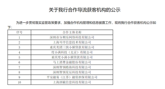 近日,吉林亿联银行再次在官网披露了其导流获客合作方名单。