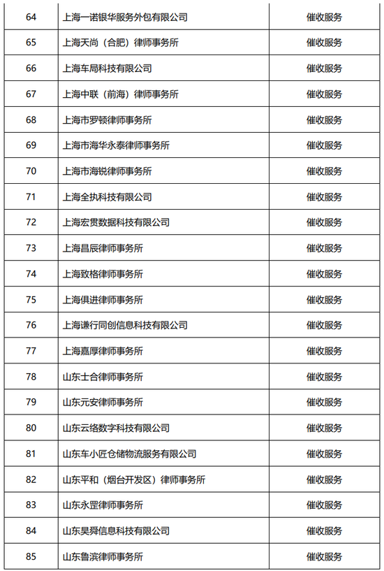 具体来看,320家催收公司遍布北上广,长沙、天津、石家庄、成都等全国各地。简单计算,催收公司的数量占比高达84%,相当于每合作5家机构,就有超过4家是专门负责“追债”的。