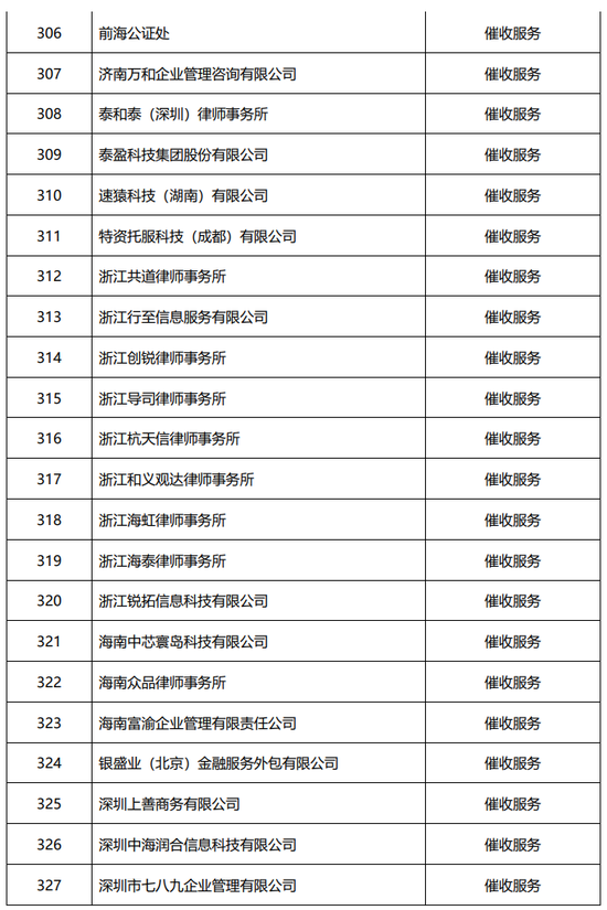 尤为引人关注的是,这382家合作机构中,320家催收公司以压倒性的多数强势控场,对比之下,18家营销获客公司和44家担保增信公司显得“身单力薄”。