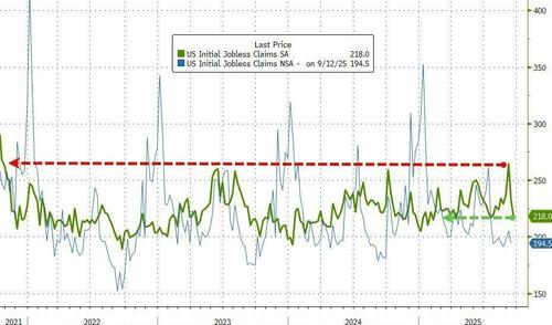 美国劳工部周四公布的数据显示,截至9月20日当周,首次申请失业救济人数经季节性调整后下降14000人,至218000人。这是自7月中旬以来单周初请失业金人数的更低水平,也远低于市场预期的23.5万人。