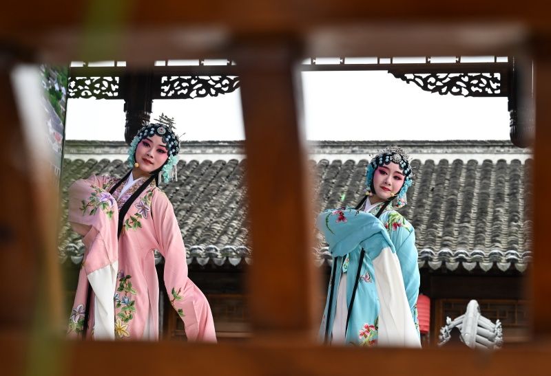 演员在盐城市的淮剧小镇为游人表演淮剧(2025年6月7日摄) 季春鹏 摄