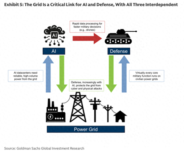 高盛分析师认为,电网是美国人工智能与国防领域最关键的“枢纽环节”,三者相互交织,使电网成为国家安全优先事项。