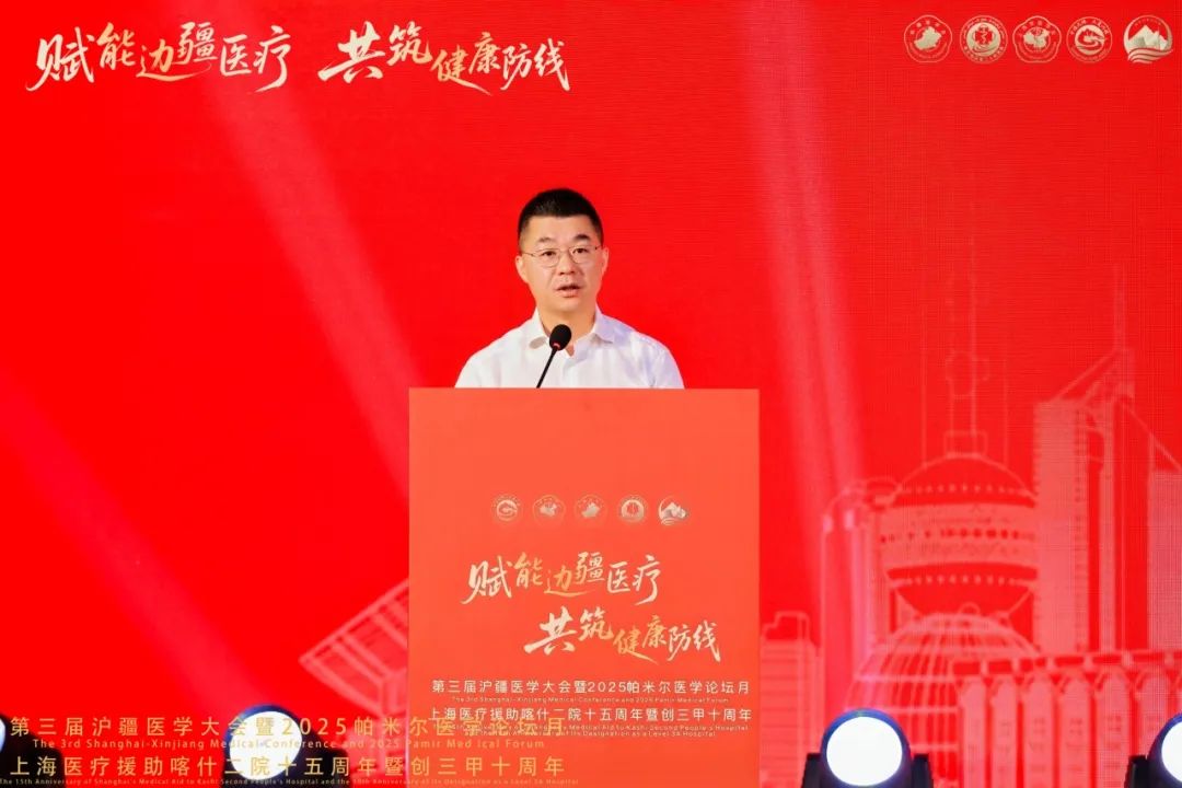 上海健康医学院校长吴韬在第三届沪疆医学大会上致辞。