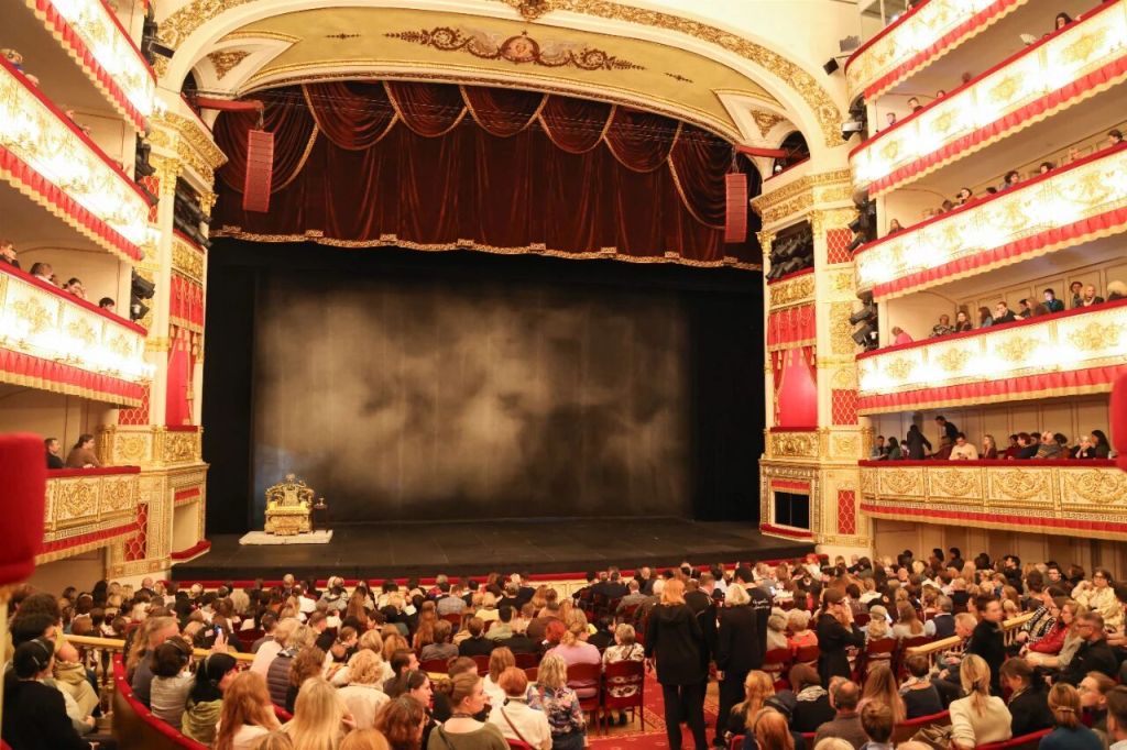 当地时间26日晚6点40分,等候入场的观众在古老的亚历山德琳娜剧院门口排起了长队,还有不少没有买到票的当地观众与中国留学生在票房前翘首等待。