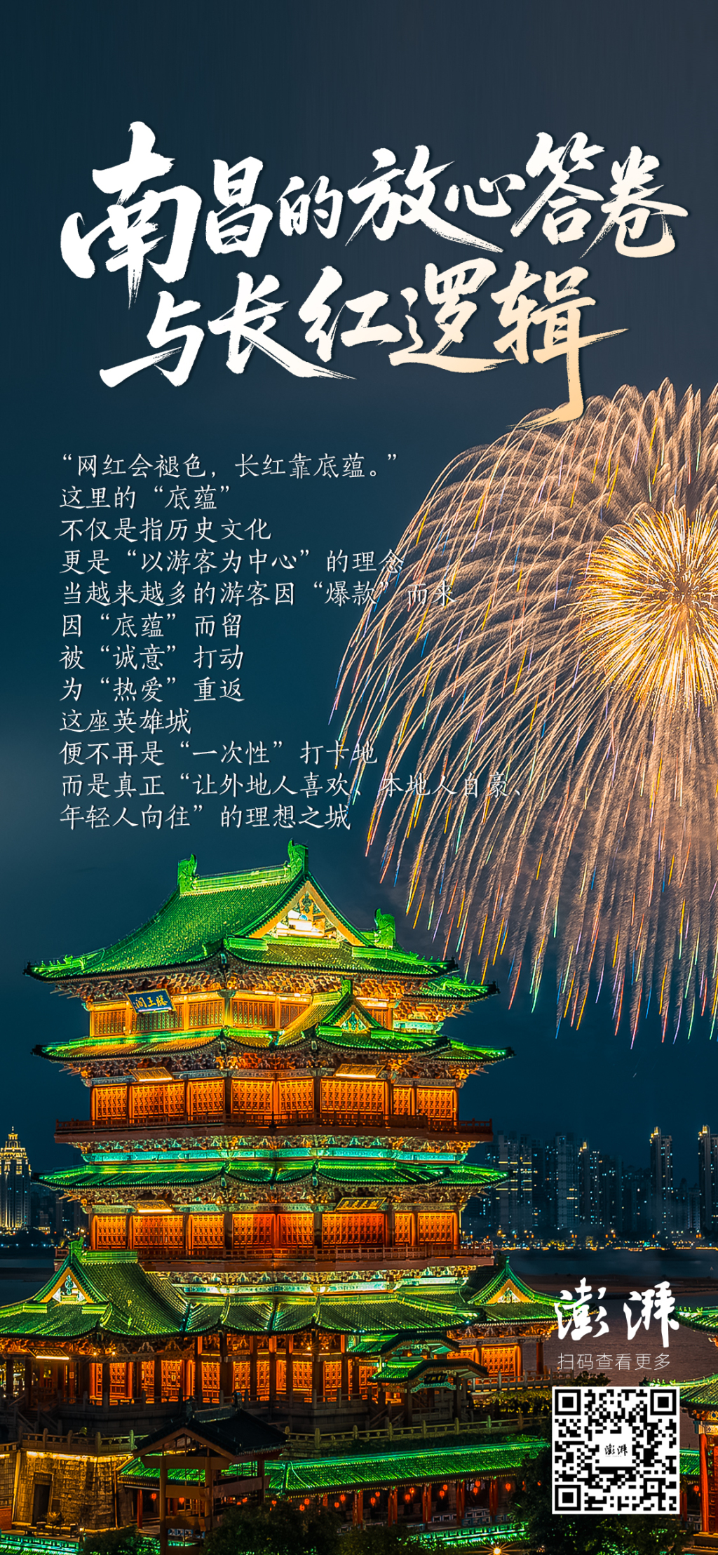 近年来,南昌已多次在长假前夕向游客喊话——“把假期放心交给南昌”。这“放心”二字,恰恰回应了当前游客的核心关切。从新老文旅场景的上新、焕新,到全龄段友好型城市大联欢的场景构建,再到宠客式服务的持续优化,南昌文旅的终极目标清晰可见:不是让游客“来一次”,而是让游客在“放心”中“爱”上这座城。