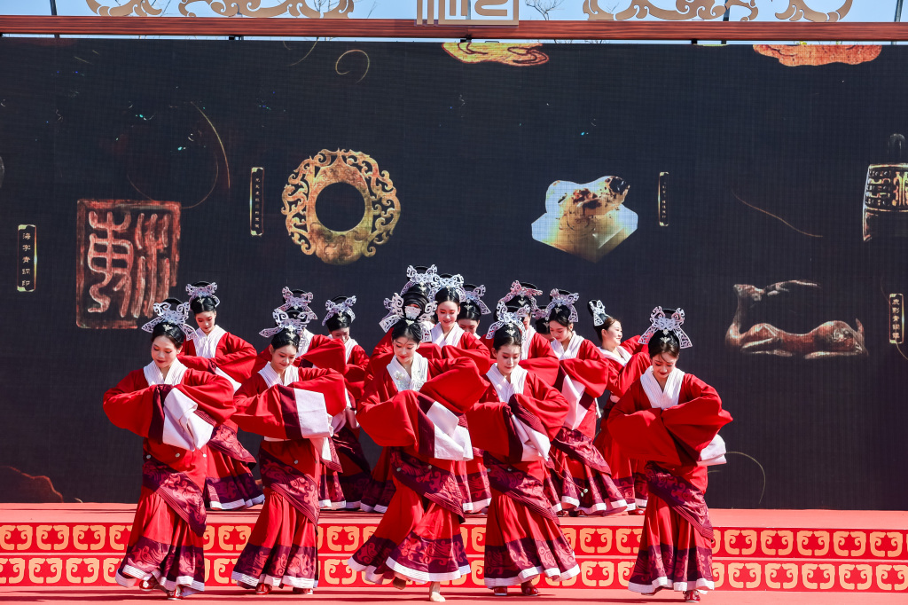 第五届海昏汉文化旅游月启动仪式上的汉舞表演。南昌汉代海昏侯国遗址博物馆 图