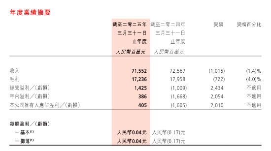 近年来,大润发的业绩持续低迷:2022财年,高鑫零售(即大润发母公司)总营收881.3亿元,同比下滑7.7%,净亏损7.39亿元;2023财年,高鑫零售营收同比下滑5.07%;2024财年,高鑫零售财务状况急转直下,实现营收725.7亿,同比下降13.26%;亏损达到了16.05亿元,经营压力可见一斑。2025财年,高鑫零售的营收继续下滑至715.5亿元。